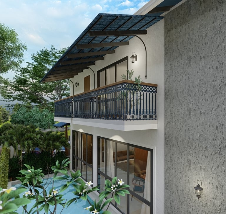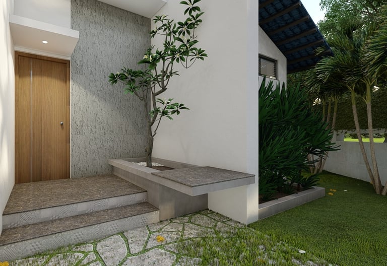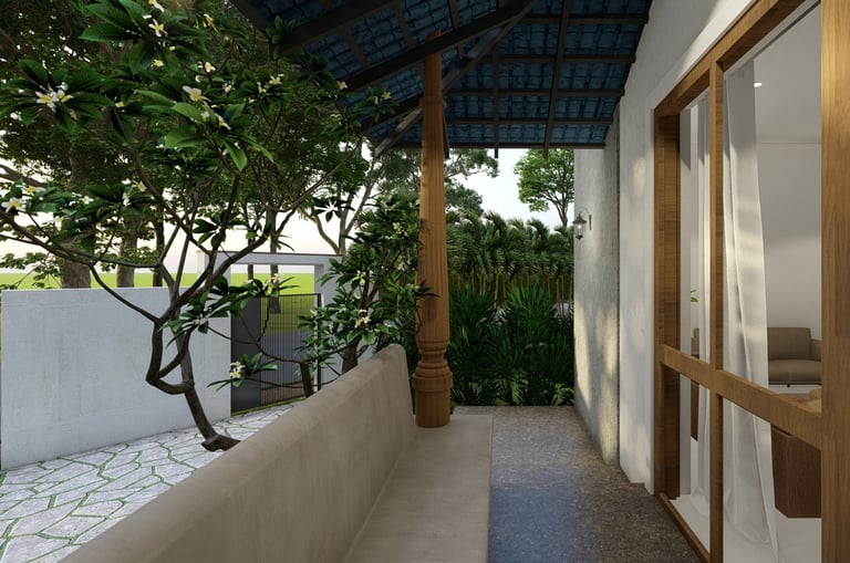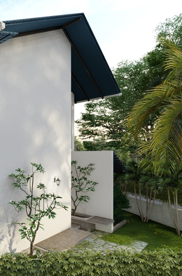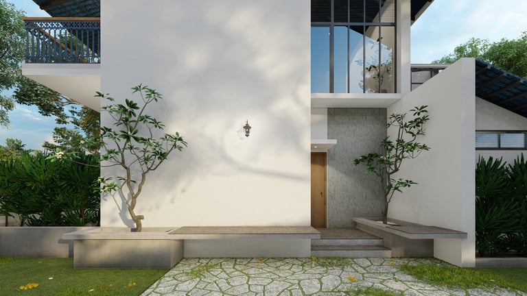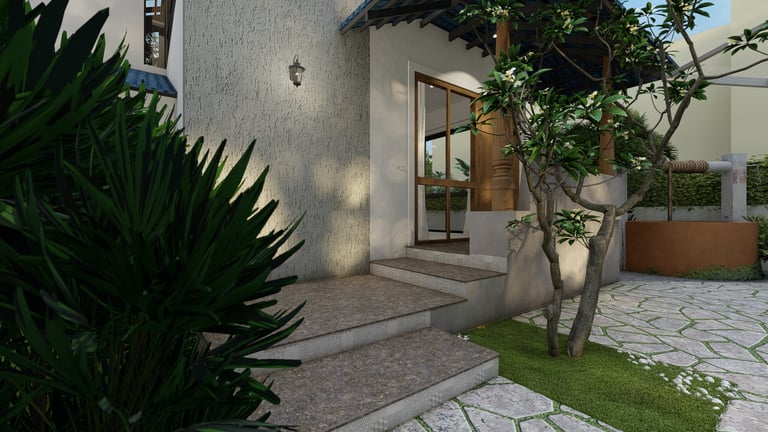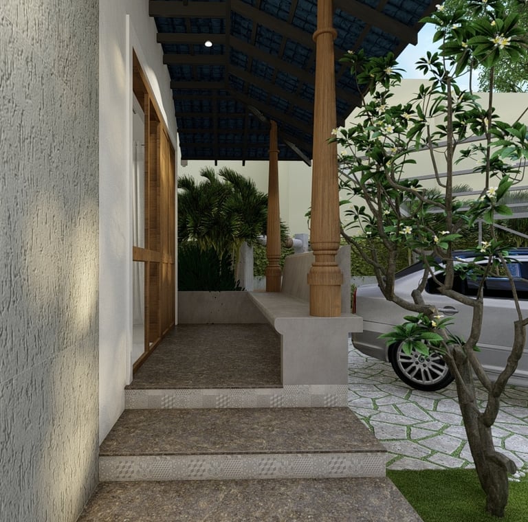 The project "Vrindavan" is one of the most exciting and heartfelt endeavors we've undertaken. It's not just about the design; it's about Sandesh Nayak and Kusum Mallya, our cherished clients. As architects, we encountered numerous challenges on site, especially with the triangular plot and significant area allocated for road widening. We meticulously designed the house within the net area, adhering to by-laws and Vastu principles. Embracing the site context, we chose Mangalore tiled roofing in a blue shade, reflecting the clients' love for the color. Every space is thoughtfully crafted to align with their hobbies and activities, ensuring their retirement life is enriched with joy and comfort in their perfect home, "Vrindavan."