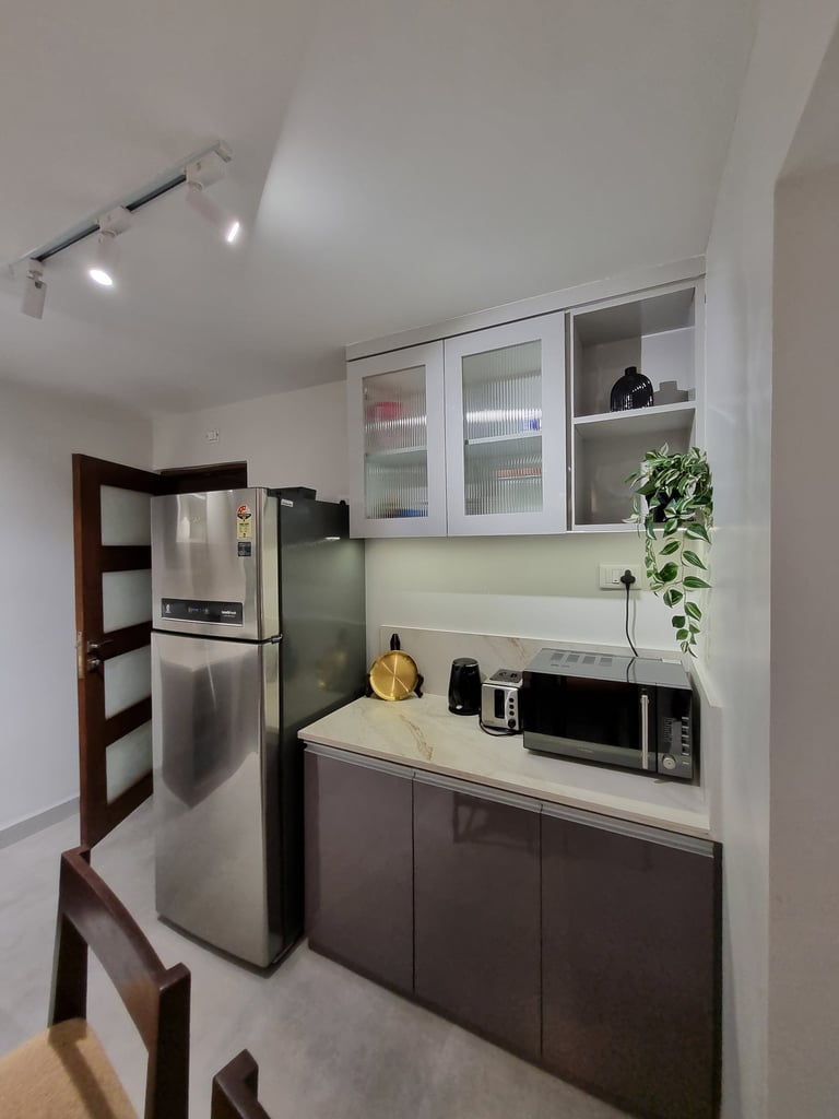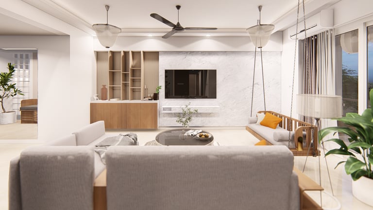 The 'Timeless' interior renovation project in Vasco, Goa, spans 1356 sq.ft and is thoughtfully designed for Jenny Khurana and her son, Anubhav Khurana. Jenny, returning to Goa after years of working abroad, envisioned a home that caters to her specific needs while offering a harmonious and functional living space. The design focuses on intuitive and seamless usability, ensuring comfort and ease throughout the home.