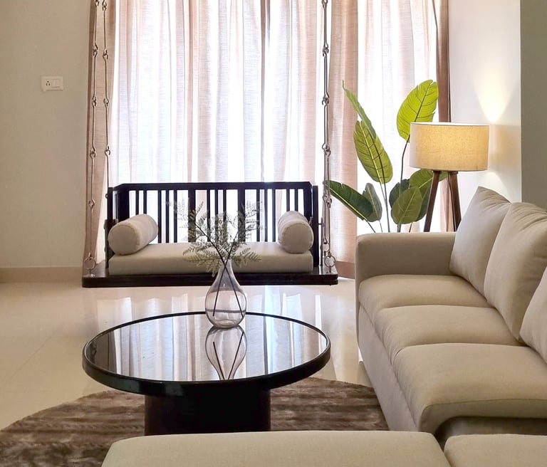 The 'Timeless' interior renovation project in Vasco, Goa, spans 1356 sq.ft and is thoughtfully designed for Jenny Khurana and her son, Anubhav Khurana. Jenny, returning to Goa after years of working abroad, envisioned a home that caters to her specific needs while offering a harmonious and functional living space. The design focuses on intuitive and seamless usability, ensuring comfort and ease throughout the home.