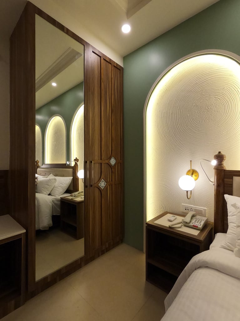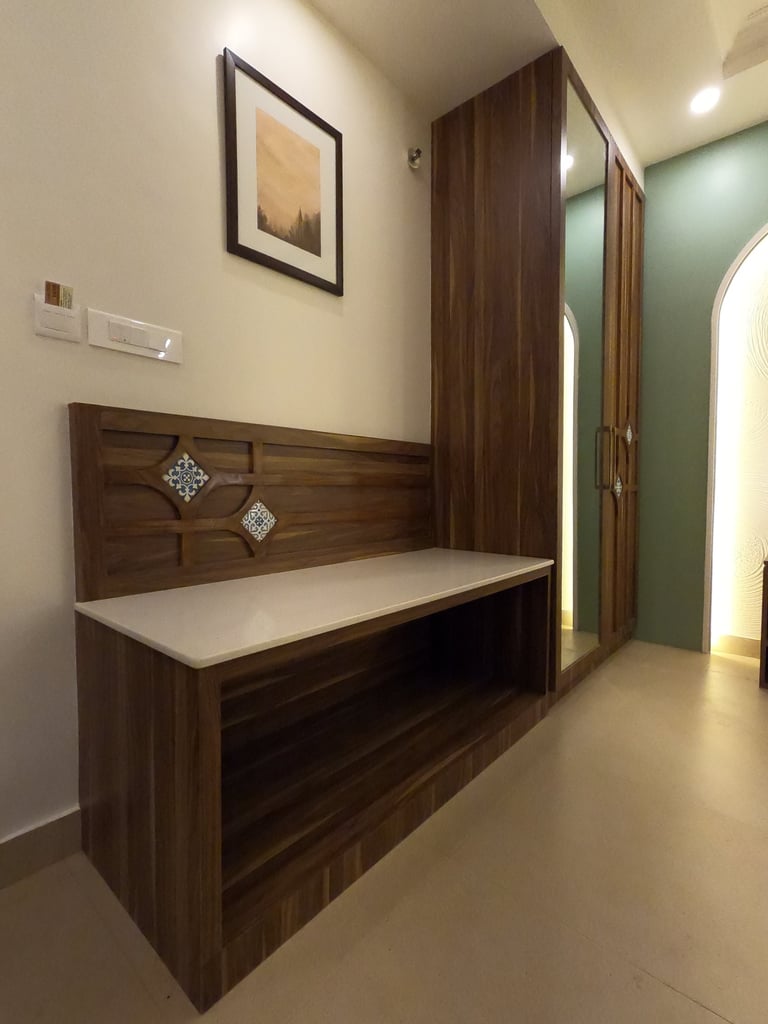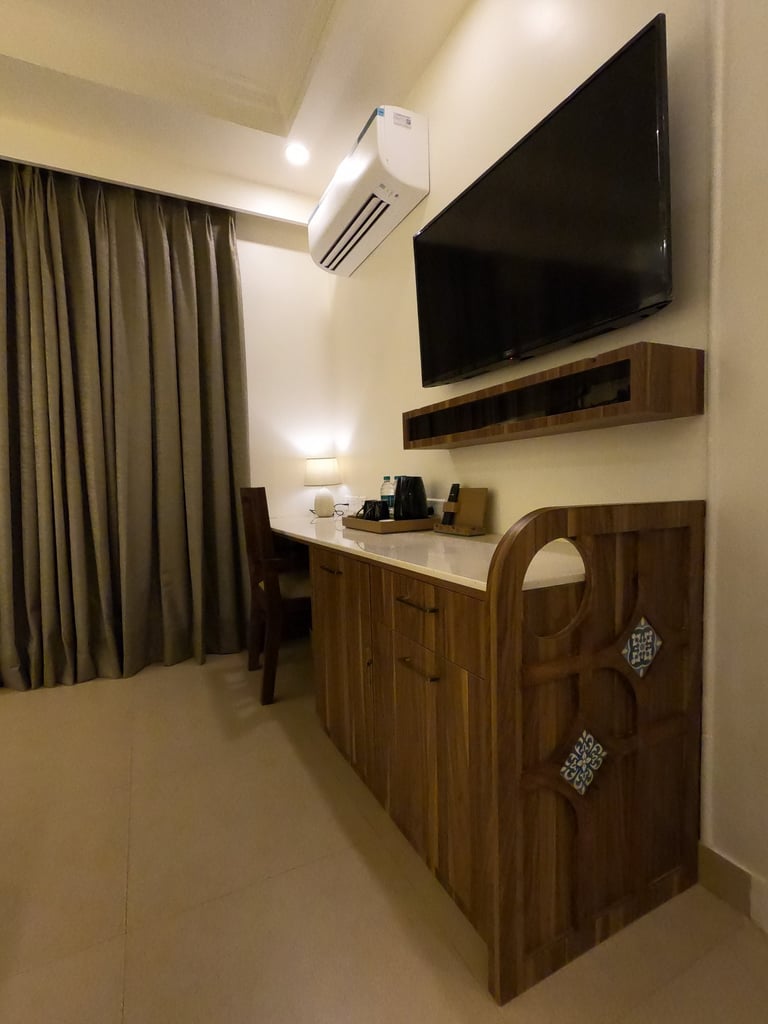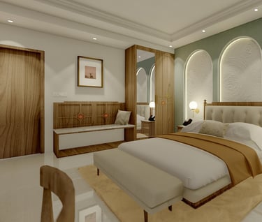 As architects, our mission was to design a space that harmonized with the client's vision while adhering to budget constraints. We chose to refurbish the existing furniture, addressing issues such as incorrect proportions and standard heights that made usage difficult for elderly guests. By modifying these elements, we enhanced comfort and accessibility. We infused elements of Goan architecture into the furniture and walls, blending these traditional touches with modern wall wash lighting. This approach allowed us to create a space that honors local heritage while embracing technological advancements, resulting in a beautifully balanced, contemporary environment.